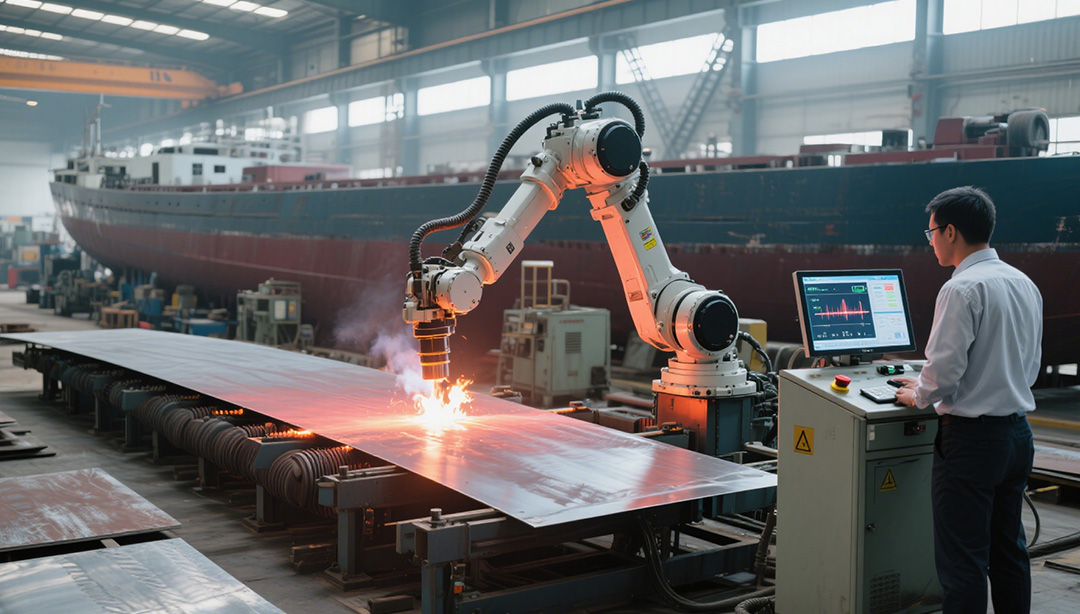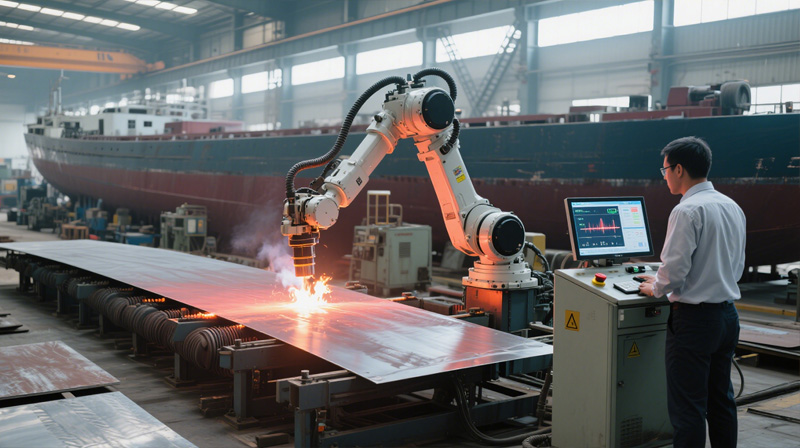 自动火工曲板加热机器人系统是一种集成机器人技术与加热工艺的自动化设备,广泛应用于造船、压力容器、航空航天等领域。它精准控制金属板材的加热过程,尤其适用于复杂曲面板材的加热与成型,提升生产效率与加工精度。系统具有智能控制、高效生产、节能环保等特点,推动了传统火工工艺的技术革新。